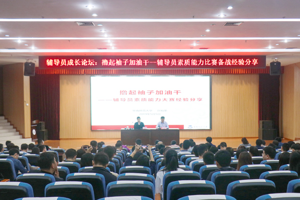 为开拓beat365辅导员工作视野,提升辅导员的素质能力,加强辅导员队伍建设,同时能帮助beat365辅导员更好地参加beat365即将举办的辅导员素质能力大赛,5月5日上午,学校在雁山校区图书馆报告厅举办了第六期“辅导员成长论坛”。第七届全国辅导员素质能力大赛二等奖获得者,华南师范大学许灿荣老师应邀为beat365全体辅导员作了题为“撸起袖子加油干——辅导员素质能力比赛备战经验分享”专题报告。学工处相关负责人,学工系统全体专兼职辅导员、博文管理学院辅导员代表等100余人参加本次论坛。