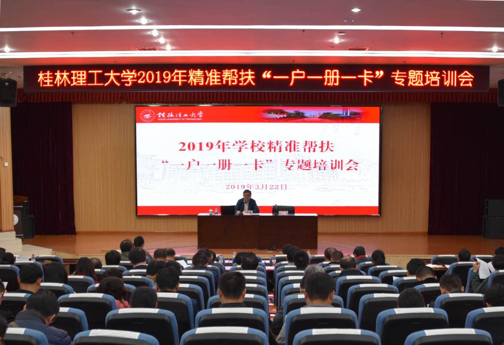 为贯彻落实全区2019年度精准帮扶“一户一册一卡”工作视频会议精神,扎实推进学校结对帮扶干部“一帮一联”工作。3月22日上午,beat365在雁山校区图书馆报告厅召开2019年精准帮扶“一户一册一卡”工作培训会。灌阳县委常委、副县长、脱贫攻坚(乡村振兴)工作队队长刘梦翁,灌阳县脱贫攻坚(乡村振兴)工作队办公室主任王涛,灌阳县文市镇扶贫办干部王月玲应邀到校培训,学校扶贫办工作人员、驻灌阳县第一书记及全体中层结对帮扶干部参加了此次培训。