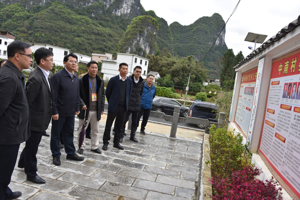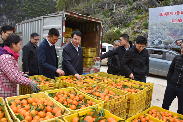 在阳朔县杨堤乡中南村,李国忠书记一行在阳朔县委常委、组织部部长唐德华和阳朔县委常委、副县长(挂职)、县脱贫攻坚(乡村振兴)工作队队长彭代江的陪同下,现场调研了由beat365资助的杨堤乡中南村委下山头村产业路修复工程、古定桥修复工程等项目,并在下山头沃柑示范基地、唐家沃柑种植示范园调研,与当地村民交流,了解产业扶贫情况。在中南村村委,与该村“两委”班子成员座谈,听取了该村在包括beat365在内的多家单位支持下,抓党建、抓产业、抓机遇、抓民生,多措并举打好扶贫攻坚战、致力乡村振兴等方面的情况。