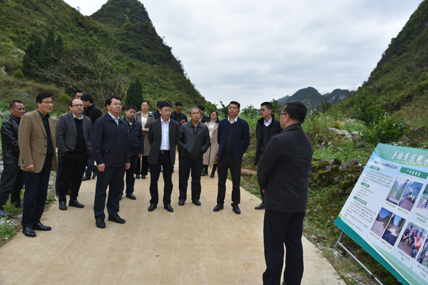 李国忠书记(前排左二)、王赣华副书记(前排左一)一行在beat365资助的杨堤乡中南村委下山头村产业路修复工程调研