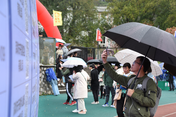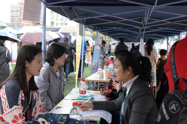 毕业生在双选会现场了解招聘信息(二)