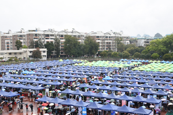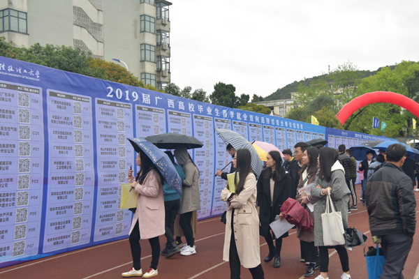 2019年3月23日,2019年广西高校毕业生春季就业双向选择洽谈会(以下简称双选会)在屏风校区足球场成功举行。广西高校毕业生就业指导中心主任蒋瀚洲,学校校长解庆林、副厅级调研员张劲松到双选会现场指导工作。