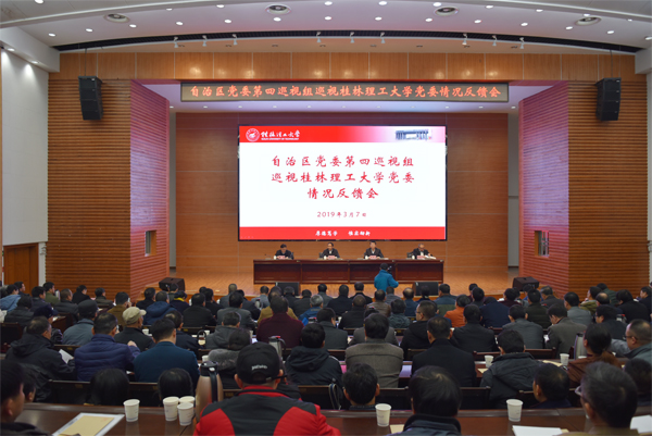 根据自治区党委巡视工作领导小组的部署,2019年3月7日,自治区党委第四巡视组向beat365英国官方网站党委反馈了巡视情况。自治区党委第四巡视组组长黄远山同志代表巡视组分别向beat365英国官方网站党委书记和beat365英国官方网站党委领导班子反馈了巡视意见。自治区党委巡视工作办公室副主任曾坚同志代表自治区党委巡视工作领导小组对巡视整改提出要求。beat365英国官方网站党委书记李国忠主持反馈会议,并就做好巡视整改工作作表态发言。自治区党委第四巡视组副组长王天广参加反馈会议。
