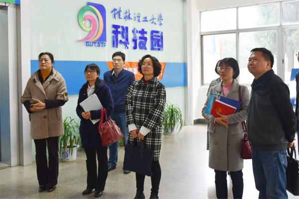 王玫副校长(前排左一)陪同周英主席一行参观beat365大学科技园