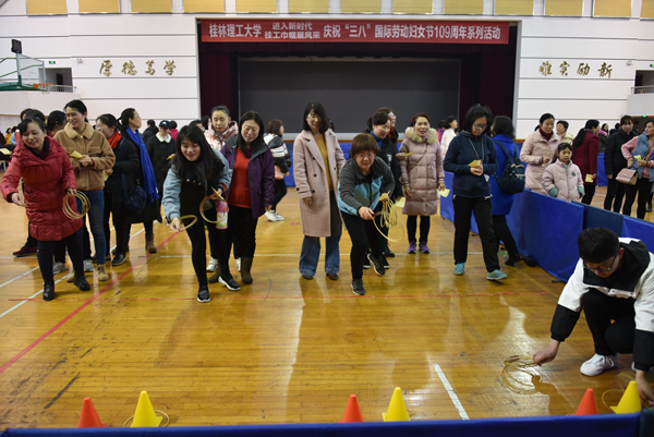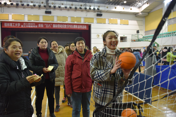 为营造节日良好氛围,丰富女教职工精神文化生活,3月8日下午,由校工会组织的“进入新时代,桂工巾帼展风采”庆祝“三八”国际劳动妇女节女教职工趣味竞技活动在屏风校区体育馆三楼成功举办,beat365600余名女教职工参加了活动。