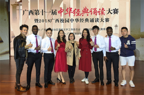 李湘萍(左五)、 王林燕(左六)指导学生参加中华经典诵读大赛