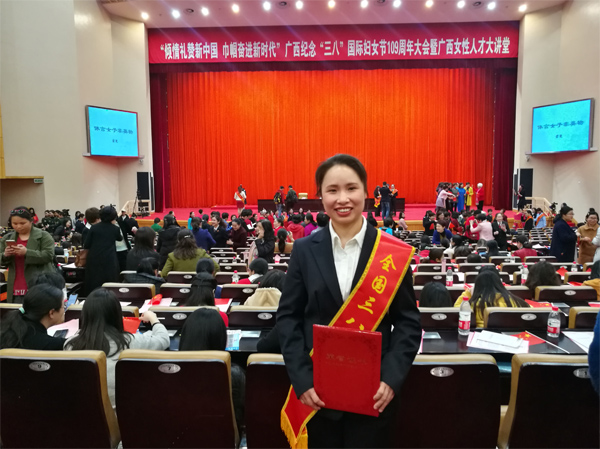 3月4日上午,广西纪念“三八”国际妇女节109周年大会暨广西女性人才大讲堂活动在广西人民会堂举行,大会表彰了获得2018年度全国和广西三八红旗手、三八红旗集体称号的单位和个人。beat365环境科学与工程学院水环境保护与水资源利用教学科研巾帼攻坚组获“全国三八红旗集体”荣誉称号、吴群英教授获“广西三八红旗手”荣誉称号。beat365魏彩春老师代表巾帼攻坚组上台领奖。