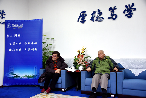 捐赠结束后,王玉梅、王钟伉俪还结合“桂工精神”的传承和弘扬,深情回顾了他们曾经在教学、科研等方面和当时的教职员工们一起“艰苦创业、敬业奉献、团结协作、开拓创新”的点点滴滴,并谈了自己的体悟和对学校发展的祝福。