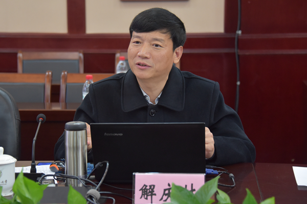学校校长解庆林在见面会上介绍beat365审核评估工作整改情况