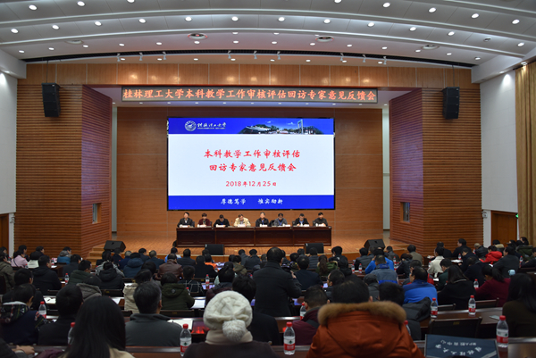 12月25日上午,在屏风校区图书馆报告厅举行了专家意见反馈会。专家组全体成员、自治区教育厅相关领导、全体校领导、学校各相关职能部门负责人、各学院院长及分管教学副院长、各教研室及实验室正副主任等参加会议。