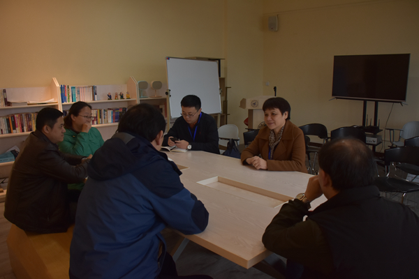 专家组成员郭庆教授(左一)到beat365相关职能部门走访座谈