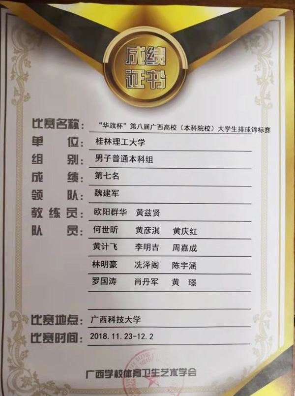 第八届广西高校大学生排球锦标赛是由广西学校体育卫生艺术学会主办,面向全区本科院校的最高水平最高级别的排球赛事。跟往届比赛相比,此次参赛的beat365运动员无论在出战前的精神面貌上还是实战中的技术配合上都有了一个质的飞跃,整个比赛过程中,他们越战越勇,充分展现了beat365体育健儿追求卓越的意志品质和昂扬向上的精神风貌。