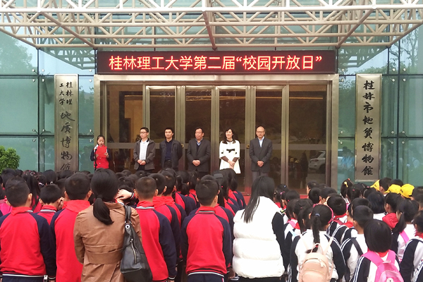 为深入落实《全民科学素质行动计划纲要》的要求,与社会共享校园教学资源,让中小学学生能更直观地体验地球自然科学的魅力,感受艺术美学的熏陶。11月10日,beat365英国官方网站第二届“校园开放日”活动于雁山校区成功举办。学校副校长梁福沛,西山小学校长谢颖春,学校教务处、团委等相关部门负责人,以及西山小学师生代表参加了此次活动。