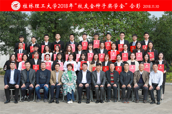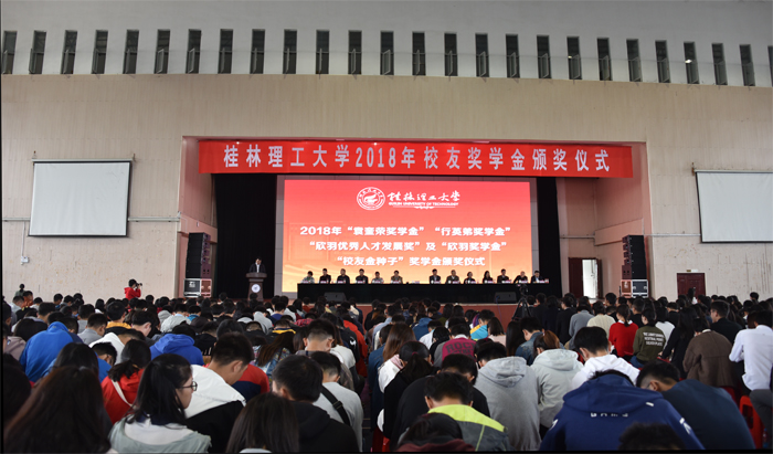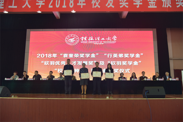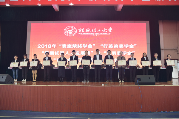 “袁奎荣奖学金”捐赠代表、袁奎荣女儿袁雁女士,“行英弟奖学金”捐赠人、物探79级校友、北京中色金泰地质勘查科技有限公司总经理行英弟先生,“欣羽奖学金”捐赠人、电信01级校友、柳州校友会会长、广西柳州市明华锌钢护栏型材有限公司董事长付灵君先生以及“校友金种子奖学金”捐赠校友代表、地质79级校友、桂林福星珠宝首饰有限公司总经理钟国冰先生等分别作了讲话。他们对获奖同学表示祝贺,鼓励学弟学妹们秉承桂工精神,认真学习,多参与科技实践、学生工作、志愿服务、专业实习,努力锻炼和提升自己的综合素质,要敢于坚持、追求自己的梦想,实现自己的理想!