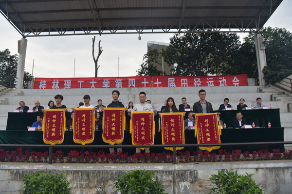 闭幕式上,总裁判长魏建军宣读了本届校运会比赛成绩和各奖项获奖名单。材料科学与工程学院、机械与控制工程学院、信息科学与工程学院、旅游与风景园林学院、艺术学院、公共管理与传媒学院荣获精神文明奖;土木与建筑工程学院、商学院、化学与生物工程学院、环境科学与工程学院、外国语学院、测绘地理信息学院荣获优秀组织奖。土木与建筑工程学院、商学院、化学与生物工程学院、信息科学与工程学院、环境科学与工程学院获得团体总分前六名。
