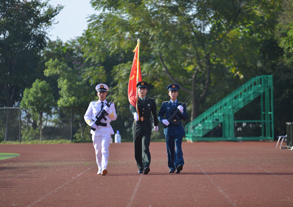 大会在高亢嘹亮的国歌声中拉开序幕。迎军旗后,王敦球副校长在承训部队崇左陆战教育发展有限公司负责人梅三红和分校保卫工作部负责人陪同下,检阅了军训队伍,向参训学生致以亲切的问候。参训学生身着戎装、精神饱满,以标准的军姿和高昂的士气向分校交上军训成果的满意答卷。