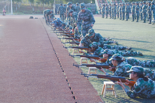 烈日下站军姿、细雨中踢正步、破空传来的集合哨声,响彻校园的喊号声,行列整齐的跑步走,到饭点时食堂里整齐的迷彩队伍……这些画面构成了我们对军训的整体印象。当青春邂逅迷彩,心头涌动的是莫名的兴奋、释放的是青春特有的激情,还有对绿色军营最初的憧憬。