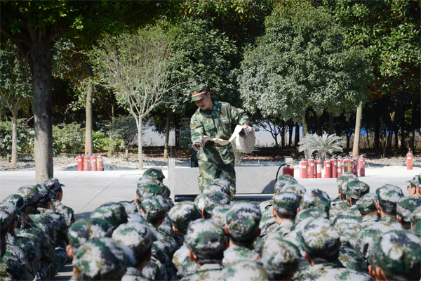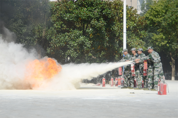 【消防演练】为了进一步强化同学们的消防安全意识,提高防火救灾的实战技能,珍爱生命,防患于未然,教官给同学们深入地讲解了消防器材的使用方法,并示范了动作要领。