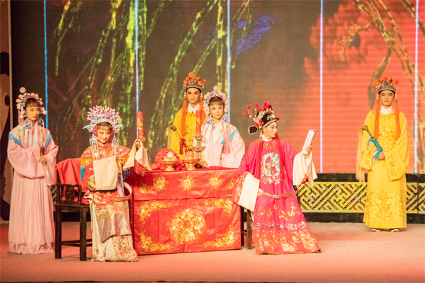 10月28日晚,2018年高雅艺术进校园——安庆再芬黄梅艺术剧院《女驸马》专场演出在beat365屏风校区体育馆三楼隆重举行。beat365副厅级调研员张劲松,宣传部、校团委、人文素质教育教学部等有关部门单位负责人与千余名师生一同观看了演出。