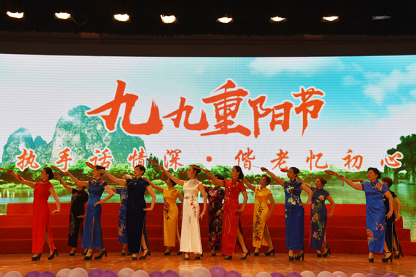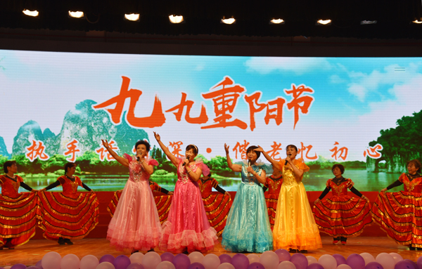 在随后的艺术展演活动中,老同志献上了歌曲、舞蹈、诗朗诵、情景剧、衍纸画等多种多样的文艺节目,既有对伟大祖国、伟大复兴中国梦的真情告白,也有对伟大光荣正确的中国共产党的深情颂扬,还有对生命价值追寻问答,对辛勤奉献老师的讴歌赞美,甚至还以地方山歌等形式,歌唱党的十九大精神、歌唱改革开放40年来的伟大成就。此外,展现老年多彩生活的旗袍秀、针对老年人防范非法集资的情景剧都独具特色。艺术展演还穿插抽奖游戏,为老同志送上节日祝福。