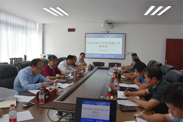 陈学军副校长在主持会议时强调,开展依法治校示范校创建活动对进一步深化学校综合改革,推进学校依法办学、依法治校、依法治教工作具有重要意义,今年6月份学校出台了创建依法治校示范校工作方案,明确了目标,细化了任务,各部门各单位积极推动落实,学校依法治校工作取得了积极成效。按照自治区有关通知精神,10月份将进行依法治校示范校有关申报工作,他要求各部门各单位要高度重视此次申报工作,进一步总结学校依法办学、依法治校方面的特色、成效和经验,凝练工作亮点,按照任务分工,落实责任,切实做好申报工作,并以此次申报为契机,加强对依法治校工作和创建依法治校示范校活动的组织领导,强化责任落实,持续推进示范校创建工作,争取成功创建依法治校示范校。