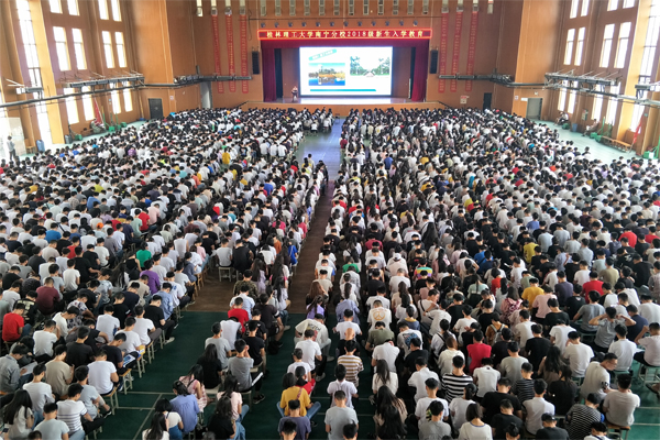 9月13日上午,学校副厅级调研员张劲松在空港校区为南宁分校2018级新生作“‘学在桂工’的大学生故事”的入学教育报告。南宁分校2018级全体新生共同聆听了报告。