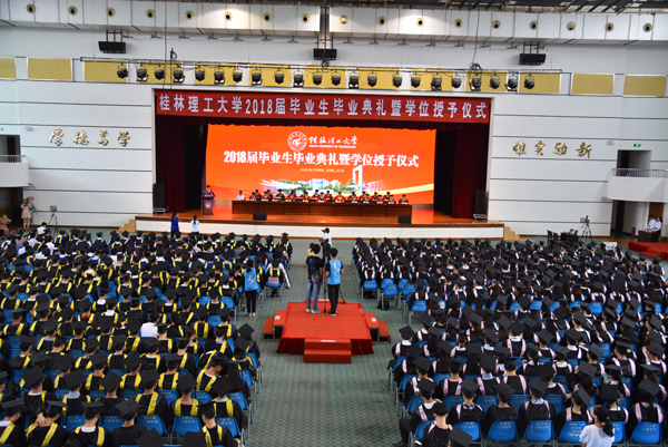 学校党委书记李国忠讲话并宣读表彰决定。李国忠书记代表学校和全体教职员工向2018届毕业生表示热烈祝贺。他说,桂工六十多年的历史,是一代代新老桂工人接续奋斗的光阴故事,在这数十年的光阴流转中,变换的是同学们的容颜,不变的是桂工青春的底色!2018届毕业生即将离开校园,奔向美好未来,他勉励各位毕业生:认真学习践行习近平总书记在视察北京大学时对青年提出“爱国、励志、求真、力行”的四点要求,始终志存高远,把自己的个人发展与国家的命运结合起来,立志成才,做信念坚定的好青年;勤学苦练,多向母校、家庭和社会汲取营养,用自己的真本事对社会做出积极贡献,做本领过硬的好青年;脚踏实地,适应社会,积累经验,勇于创新,做奋发有为的好青年;修身律己,引领风尚,弘扬社会主义核心价值观,做桂工精神的传承者,在祖国大地谱写出动人的青春赞歌和壮丽的人生诗篇!