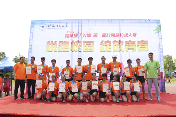 本次大赛创新赛制,分为竞赛组和体验组,采用单圈环绕校园的跑步路线,起点和终点分别设置在香樟路和田径场。经过激烈的角逐,荣获校园马拉松大赛经过为时半天的激烈角逐,荣获校园马拉松个人赛男子竞赛组前三名的选手是:第一名材料科学与工程学院高分子16-1班宋骏佳、第二名旅游与风景园林学院酒店管理16-1班黄永荣、第三名土木建筑与工程学院建筑学16-1班杨明;女子竞赛组前三名的选手是:第一名外国语学院英语16-4班廖锦华、第二名商学院会计17-4班李凝香、第三名艺术学院设计学类17-11班谢秋艳;男子体验组前三名的选手是:第一名材料科学与工程学院高分子16-1班宋骏佳、第二名机械与控制工程学院机械机械17-3班黄建鹏、第三名地球科学学院资规15-1班吴镇城;女子体验组前三名的选手:第一名环境科学与工程学院环工16级实验班潘惠妹、第二名测绘地理信息学院测绘类17-5班吴巧丽、第三名公共管理与传播学院传播学17-2班谈惠婷。荣获校园马拉松教职工个人赛男子竞赛组前三名的选手是:第一名机关一分工会朱强、第二名测绘地理信息学院分工会付波霖,第三名测绘地理信息学院分工会高二涛;女子竞赛组前三名的选手是:第一名化学与生物工程学院分工会及方华,第二名测绘地理信息学院分工会殷敏、第三名测绘地理信息学院分工会邓腾芳。