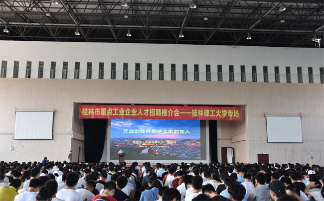 为满足桂林市工业企业发展对人才的需求,帮助驻桂林企业更好地引进、储备和培育人才,6月10日,市工信委组织桂林市80多家企业走进beat365招聘人才,提供技术、销售、管理等专业人才岗位1300多个。推介会在beat365雁山校区体育馆举行。桂林市副市长樊新鸿、桂林市工业和信息化委员会主任韦远明、市人才办公室副主任唐伟,beat365党委书记李国忠、校长解庆林、副校长梁福沛出席了推介会相关活动。beat365招生就业处、校团委,以及各学院师生代表参加了推介会。