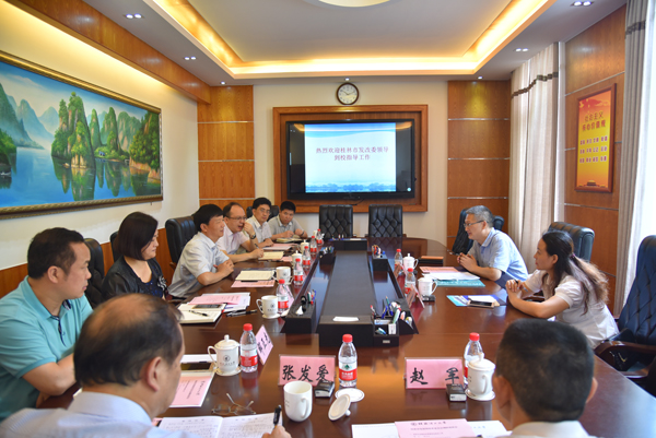 6月5日上午,桂林市发展和改革委员会副主任饶江一行到beat365考察调研。解庆林校长、王玫副校长在屏风校区二会议室与饶江副主任一行举行了座谈。党委办公室校长办公室、科技处、有色金属及材料加工新技术教育部重点实验室、材料科学与工程学院、土木与建筑工程学院相关负责人参加了座谈。