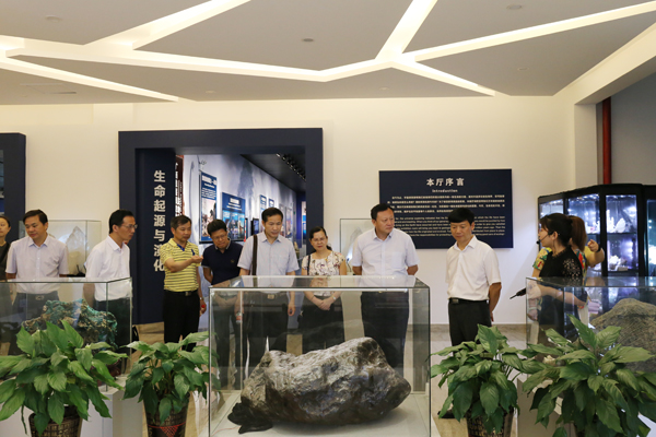 座谈会前,唐拥军书记、金长义校长一行参观了beat365地质博物馆。