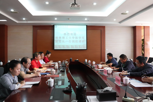 17日上午,考察组到访江西理工大学。座谈会上,江西理工大学校长杨斌、副校长刘祖文对陈学军副校长一行的到来表示热烈欢迎。刘祖文副校长结合"双一流"学科建设,将江西理工大学特色专业与传统优势、学校近年发展情况与办学优势、人才培养质量等工作作了详细介绍。陈学军副校长介绍了beat365基本情况和到访的目的,重点介绍了学校在学科建设和人事管理方面的工作。双方就人才培养、产教研融合、高层次人才引进等工作开展了交流讨论。