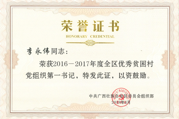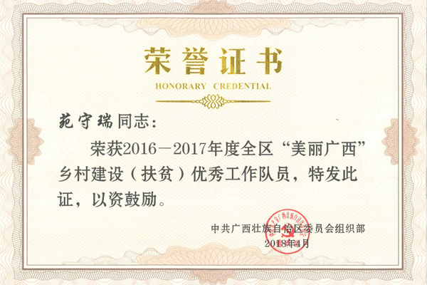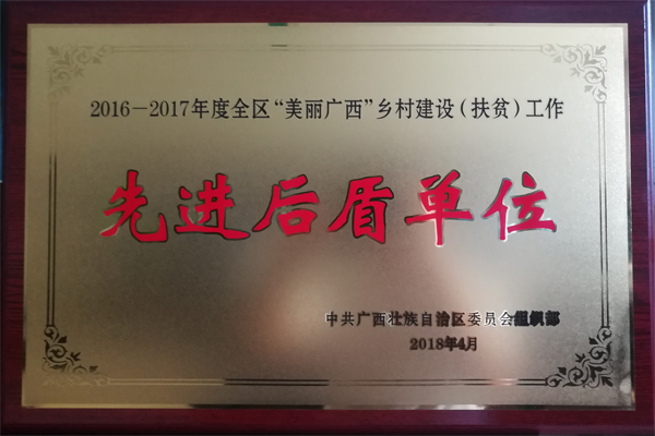 beat365被授予“2016—2017 年度全区‘美丽广西’乡村建设(扶贫)工作先进后盾单位”