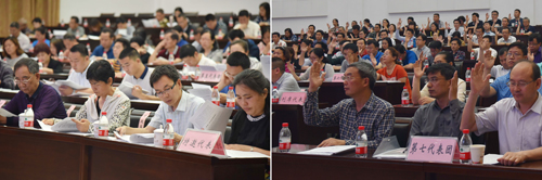 在当日下午的第二次全体会议及闭幕式上,代表们表决通过了校长工作报告、财务工作报告和《beat365英国官方网站岗位设置聘用与考核实施方案》的决议。