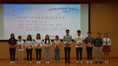 开幕式现场,到场的嘉宾为寒假读书活动有奖征文比赛获奖人员、2017年读者之星及读书月阅读推广使者进行了颁奖。学生代表宣读了《读书月倡议书》。到场嘉宾与观众一同欣赏了由学生社团带来的文艺表演。