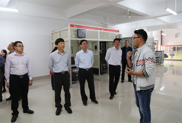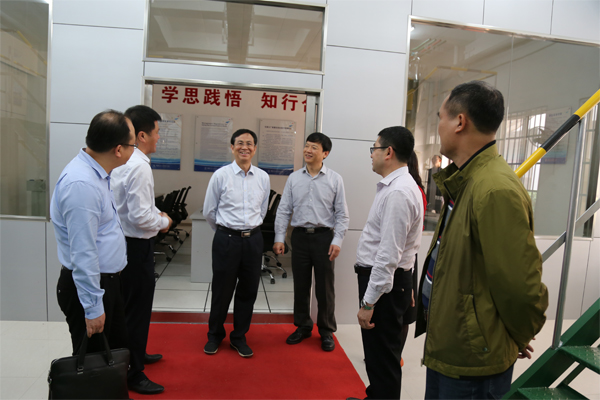 赵艳林主席认真听取了南宁分校办学规模、教学科研、专业设置、实训室建设和空港校区建设等方面的情况汇报,实地调研了南宁分校智能制造工厂、冶金化工虚拟仿真实验教学中心、跨专业综合实训室、电工技术实验室、楼宇安防监控实训室等实训室,到南宁分校图书馆、学生宿舍和白岭家园进行了参观。在认真听取汇报和实地调研后,赵艳林主席对南宁分校近几年教学科研和建设发展取得的成果表示高度肯定,对南宁分校各项工作给予高度评价和深切厚望,希望分校不忘初心、砥砺奋进,取得新的成绩。
