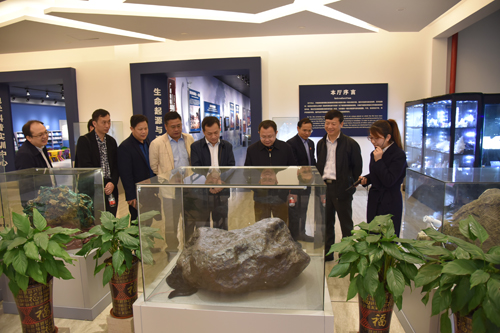 座谈会开始前,周飞局长一行在解庆林校长、周国清副校长的陪同下参观了beat365地质博物馆、测绘地理信息学院。