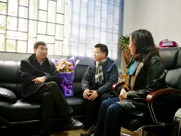 广西科协副主席梁宏(左)慰问匡小军研究员(中)