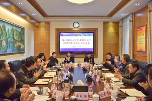 按照自治区纪委、自治区党委组织部《关于认真开好2017年度县以上党和国家机关党员领导干部民主生活会的通知》(桂组通字〔2017〕98号)和上级工作安排,1月11日下午,beat365领导班子在屏风校区第二会议室召开了2017年度专题民主生活会。民主生活会由校党委书记李国忠主持。自治区党委组织部干部五处副处长邓红专同志和自治区高校工委组织部干部蒋凯同志到会指导。