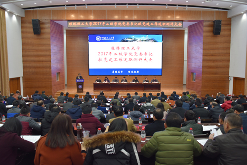 根据学校党委工作安排和学校对处级领导干部考核的要求,元月4日上午,学校在屏风校区图书馆报告厅召开2017年二级学院党委书记抓党建工作述职测评大会。在家党员校领导李国忠、解庆林、王赣华、陈学军、王玫、王敦球、张劲松出席会议,学校处级党员领导干部,各二级学院党委委员、党支部书记代表参加会议。