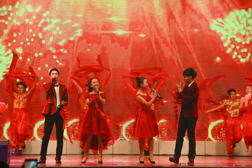体育馆内张灯结彩,座无虚席,现场同学热情洋溢,由大学生艺术团带来的舞蹈《美丽中国年》迅速点燃现场气氛。校学生会带来的开场视频带领同学们一起回顾了2017年我们共同经历的国家与学校大事件,展望即将到来的2018年,我们将深入贯彻落实党的十九大精神,乘着迈进新时代的春风,朝着建设特色鲜明的高水平教学研究型理工大学的目标阔步前进。