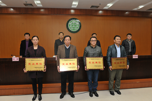 梁福沛副校长(前排左二)作为获奖单位代表上台领奖