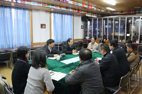 12月19日下午,学校校长解庆林、副校长周国清到国际教育学院(国际交流处)调研指导工作,国际教育学院(国际交流处)全体行政人员参加了调研座谈。