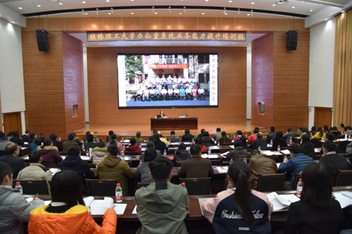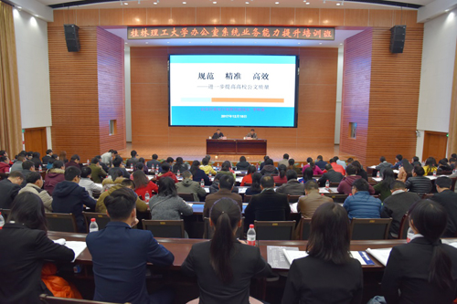 为适应新形势下办公室工作,提升办公室工作人员的专业素养和工作能力,更好地服务学校发展,12月10日上午,beat365在屏风校区图书馆报告厅举办了全校办公室系统业务能力提升培训班,邀请到桂林市委副秘书长、市接待办主任王春梅和自治区教育厅高教处副处长李辉善做业务辅导报告,学校各单位、各部门办公室(综合科)共计160多人参加了培训。培训班由党办校办主任邓国彬主持。