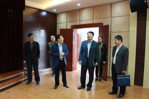 李国忠书记(前排左三)实地查看教职工活动中心多功能厅
