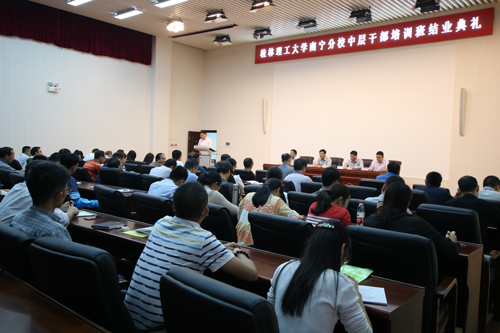 典礼在庄严的国歌声中拉开序幕。学校党委宣传部部长叶昊同志在典礼上为学员代表颁发结业证书。南宁分校党委主要负责人在典礼上总结了南宁分校中层领导培训班整体学习培训情况。南宁分校教务管理部主任、土木与测绘工程系党总支书记作为学员代表在典礼上发言。