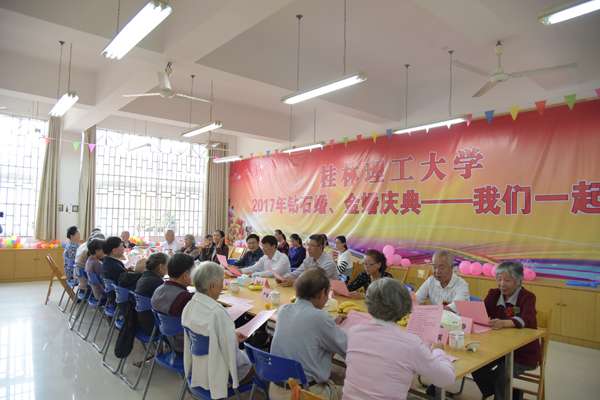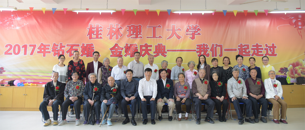 10月28日正值九九重阳时,为弘扬中华民族爱老敬老的优秀传统美德,营造尊老、爱老、助老的氛围,beat365举办2017年重阳节钻石婚金婚庆典座谈会喜迎重阳,为14对老人共庆钻石婚金婚,学校校长解庆林、党委副书记王赣华,离退休工作处主要负责人和工作人员一起到会庆贺。