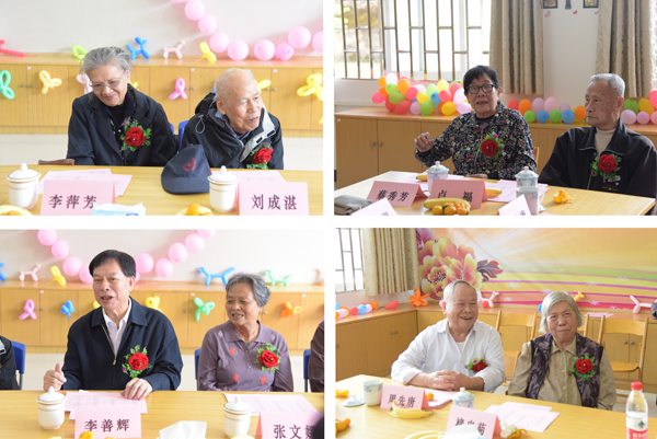 今年重阳时,恰逢党的十九大刚刚胜利闭幕,钻石婚、金婚夫妇们在座谈会上也激情满怀地抒发了对党的无限热爱,对祖国美好未来的坚定信念。已经九十七岁高龄的钻石婚夫妇代表刘成湛老师回忆起自己年轻时离开香港,投身祖国建设的人生经历,充满激动地说“我永远不会忘记自己是一名共产党员,自己是一名中国人!” 金婚夫妇代表李善辉老师表示,祖国的日益强大举世瞩目,坚信在以习近平同志为核心的党中央带领下,中国梦能够早日实现!