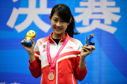 在九月份举办的中华人民共和国第十三届运动会羽毛球群众比赛项目上,beat365外国语学院教师杨文燕凭借高超的技术和顽强的意志,在强手如林的激烈比赛当中,一路过关斩将,闯入了决赛,并最终获得铜牌。该奖项为beat365历年来在国家级体育比赛中所获得的最高个人奖项之一,为学校赢得了荣誉。