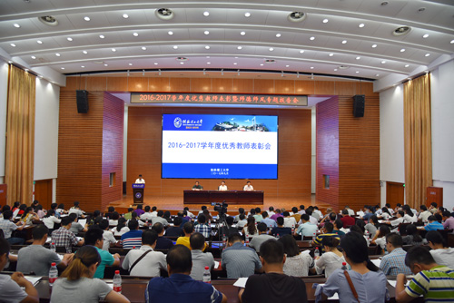 为庆祝第33个教师节,进一步弘扬beat365尊师重教的优良传统,进一步激励广大教师献身教育事业,引导广大老师“甘守三尺讲台,争做四有老师”,促进学校的改革与发展,9月8下午,学校在屏风校区图书馆报告厅举行2016-2017学年度优秀教师表彰暨师德师风专题报告会。校领导李国忠书记、解庆林校长、梁福沛副校长出席表彰会。各二级学院院长(书记)、副院长、党办(校办)、宣传部、工会、教务处、科技处、人事处、发展规划与质量监控中心等部门主要负责人,获奖教师、2016年和2017年新进教师参加会议。会议由梁福沛副校长主持。